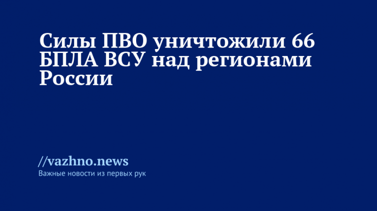 В официальном Telegram-канале ведомства говорится: «В интервале между 17.25 и 22.40 мск дежурные средства ПВО перехватили и уничтожили 66 украинских самолетного типа беспилотников».