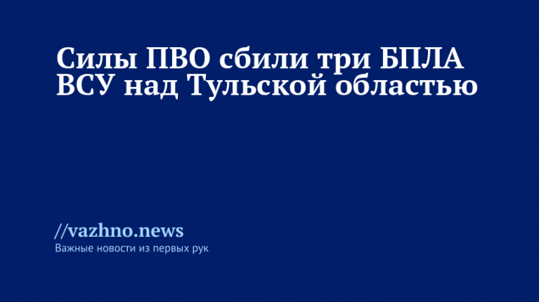 «Ночью подразделения ПВО Министерства обороны России уничтожили над Тульской областью еще три украинских беспилотника», — написал он в своем Telegram-канале.