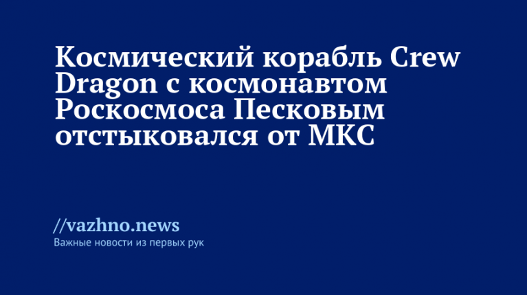 Указывается, что помимо Пескова в состав экипажа Crew Dragon входят астронавты NASA Энн МакКлейн и Николь Айерс, а также астронавт JAXA Такуя Ониси.