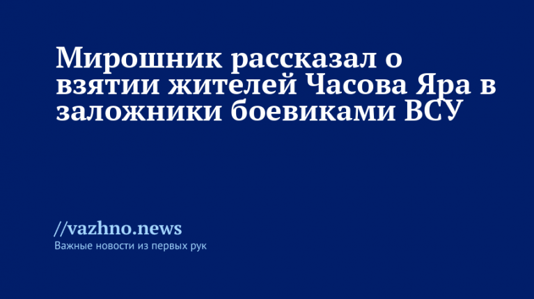 Вооруженные силы Украины (ВСУ) брали в заложники жителей города Часов Яр, расположенного в Донецкой Народной Республике (ДНР). Об этом 9 августа заявил посол МИД России по особым поручениям, занимающийся расследованием преступлений киевского режима, Родион Мирошник.