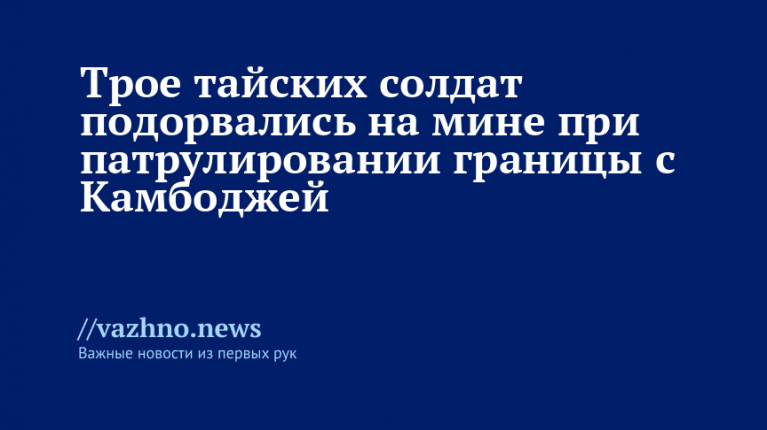 Согласно данным агентства, у одного из солдат ампутирована нога, а двое других получили травмы во время патрулирования района, расположенного между провинцией Сисакет в Таиланде и Преахвихеа в Камбодже, утром 9 августа.