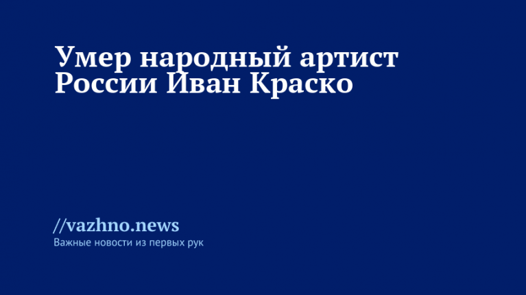 Народный артист России Иван Краско скончался в возрасте 94 лет. Об этом сообщил депутат Законодательного собрания Санкт-Петербурга Александр Ржаненков на своем Telegram-канале.