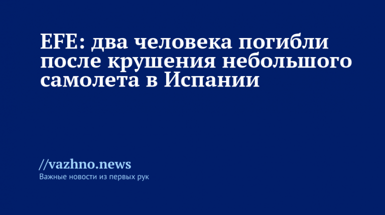 «В субботу два человека погибли в результате падения сверхлегкого самолета в районе Эль-Понтон, входящем в валенсийский муниципалитет Рекена», — говорится в заявлении.