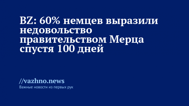 «Спустя почти 100 дней после формирования коалиции большая часть граждан критикует федеральное правительство и канцлера Фридриха Мерца (руководителя Христианско-демократического союза. — Ред.), 60% выступили против их деятельности», — говорится в статье издания.