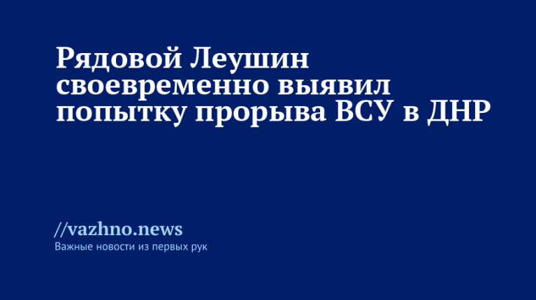 Рядовой Леушин вовремя обнаружил попытку прорыва ВСУ в ДНР