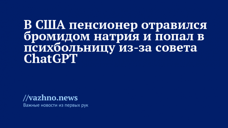 Отмечается, что ChatGPT предложил пациенту заменить поваренную соль бромидом натрия. Спустя три месяца после начала такой диеты мужчина обратился в отделение неотложной помощи и сообщил персоналу о возможном отравлении, предположительно совершённом соседом.