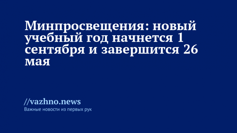 «Новый учебный год начнется 1 сентября и завершится 26 мая. Возможно проведение обучения как по четвертям, так и по триместрам», — говорится в сообщении ведомства.