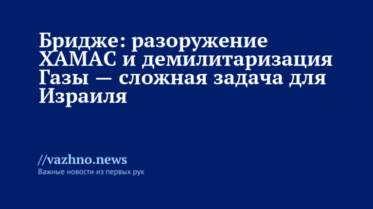 Разоружение палестинской организации ХАМАС, освобождение заложников, демилитаризация сектора Газа и передача управления безопасностью в регионе Израилю являются крайне сложной задачей для Тель-Авива с высоким уровнем рисков. Об этом 11 августа сообщил «Известиям» политолог Дмитрий Бридже.
