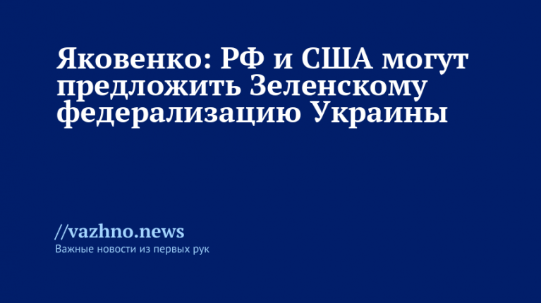 Россия и США могут предложить президенту Украины Владимиру Зеленскому идею федерализации страны. Об этом 11 августа сообщил член президиума научно-экспертного совета Совбеза РФ, чрезвычайный и полномочный посол РФ Александр Яковенко.