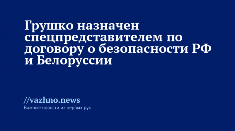 Президент России Владимир Путин назначил заместителя министра иностранных дел РФ Александра Грушко специальным представителем России по Договору о гарантиях безопасности в рамках Союзного государства. Соответствующее распоряжение было опубликовано 11 августа на официальном интернет-портале правовой информации.