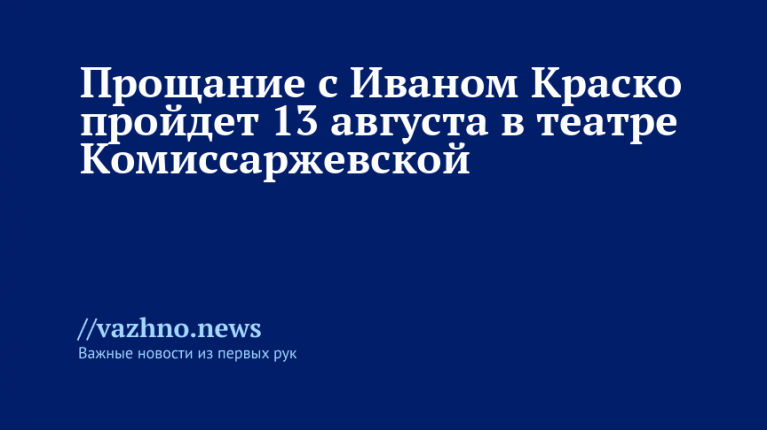 «Прощание с народным артистом России Иваном Ивановичем Краско пройдет 13 августа с 10:00 до 11:30 по Московскому времени в Театре им. В.Ф. Комиссаржевской по адресу: улица Итальянская, дом 19», — цитирует ТАСС пресс-релиз театра.