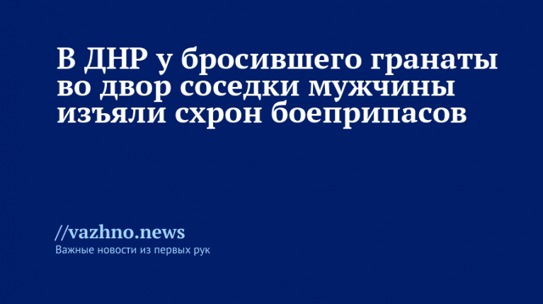 В Донецкой Народной Республике (ДНР) сотрудники полиции обнаружили схрон с боеприпасами у мужчины, который забросил во двор своей соседки две гранаты. Об этом стало известно 11 августа из пресс-релиза МВД республики.