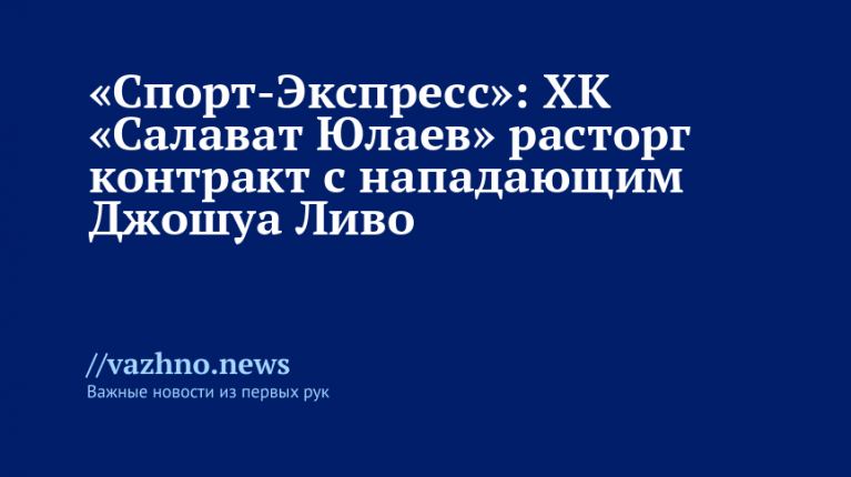 Руководство хоккейного клуба «Салават Юлаев» приняло решение прекратить сотрудничество с нападающим Джошуа Ливо. Об этом 11 августа сообщил агент спортсмена Иван Ботев.