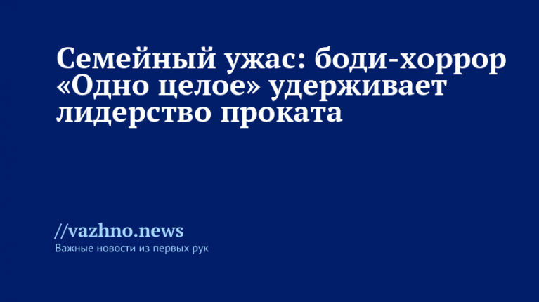 В прошедшие выходные посещаемость кинотеатров снизилась до критической отметки — 700 тыс. зрителей, что произошло уже во второй раз за год, сообщает база ЕАИС. При этом лидирующая тройка осталась без изменений. На первом месте находится боди-хоррор «Одно целое» с участием Дэйва Франко и Элисон Бри. Эта лента принесла в кассу дополнительно 28 млн рублей, доведя общие сборы до 90 млн. На второй позиции расположилась картина «Мой папа — медведь», заработавшая 23 млн рублей и снова ставшая самым посещаемым фильмом уикенда: свыше 70 тыс. зрителей пришли посмотреть приключения Евы Смирновой.