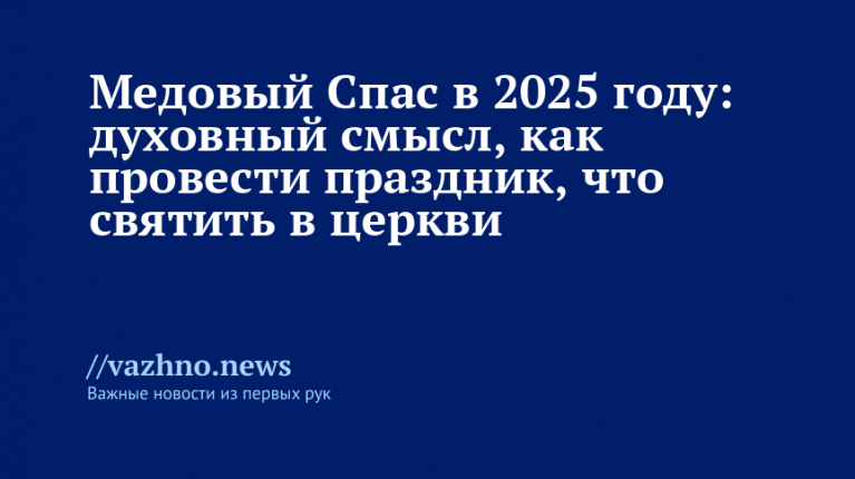 Медовый Спас в 2025 году: значение праздника 14 августаМедовый Спас — один из трех Спасов, ежегодно празднуемых в православной традиции летом. Название «Спас» происходит от древнерусского слова «спасение» и связано с почитанием Спасителя — Иисуса Христа. Каждый из Спасов посвящен конкретному духовному событию, связанному с благодарностью Богу за дары природы и жизни.