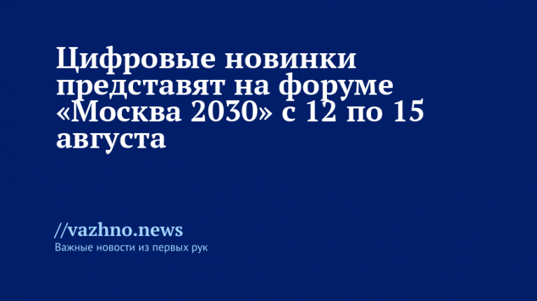 Форум «Москва 2030» представит цифровые новинки с 12 по 15 августа