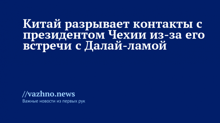 Власти Китая приняли решение прекратить все контакты с президентом Чешской Республики Петром Павлом после его встречи с Далай-ламой XIV. Об этом 12 августа заявил официальный представитель МИД КНР Линь Цзянь.
