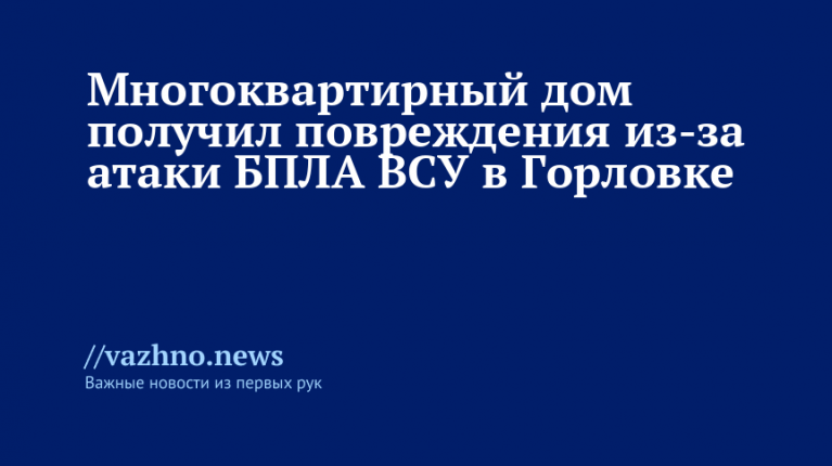 В городе Горловка Донецкой Народной Республики (ДНР) многоквартирный жилой дом был поврежден вследствие атаки беспилотного летательного аппарата (БПЛА) Вооруженных сил Украины (ВСУ). Об этом 12 августа сообщил мэр Горловки Иван Приходько.
