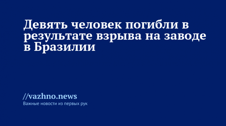 В Бразилии в результате взрыва на предприятии по изготовлению взрывчатых веществ погибли девять человек. Об этом 13 августа сообщил губернатор штата Парана Ратиньо Жуниор.
