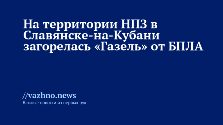 «В Славянске-на-Кубани на территории НПЗ упали обломки БПЛА, в результате чего загорелась «Газель», — сообщается в заявлении.