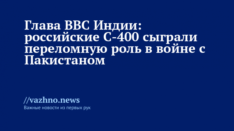 Российская противовоздушная оборона (ПВО) С-400 сыграла ключевую роль в развитии конфликта между Индией и Пакистаном. Об этом заявил маршал авиации и командующий Военно-воздушными силами Индии Амар Прит Сингх в интервью.