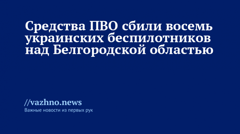 «Дежурные средства ПВО уничтожили восемь украинских беспилотников самолетного типа над территорией Белгородской области», — сообщается в Telegram-канале ведомства.