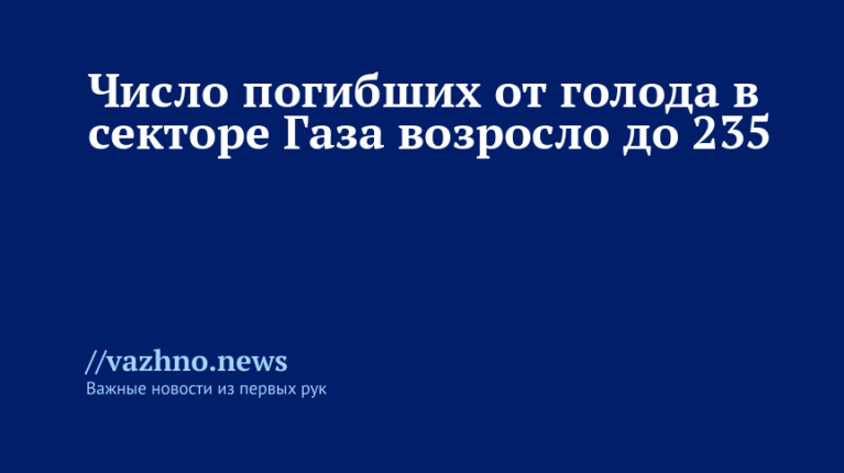 Сообщается, что за последние 24 часа было зафиксировано восемь случаев смерти от голода, среди которых три — дети. Кроме того, за сутки в медучреждения сектора Газа доставили 123 погибших и 437 пострадавших.