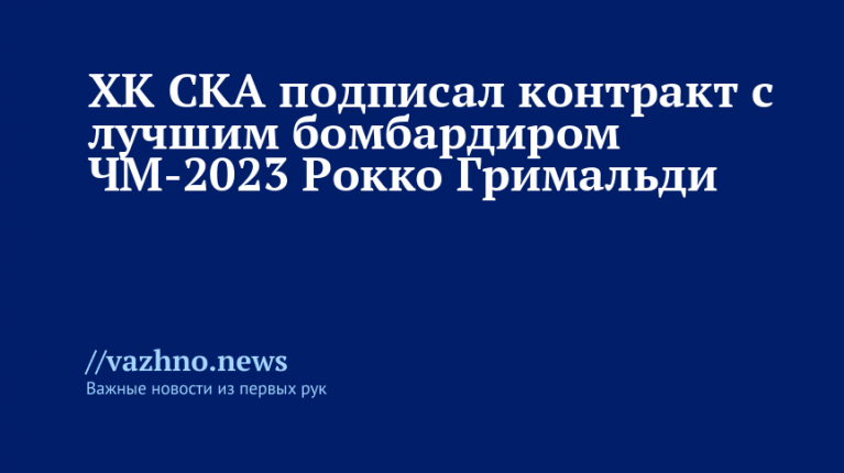 Хоккейный клуб (ХК) СКА из Санкт-Петербурга сообщил о заключении договора с 32-летним американским нападающим Рокко Гримальди. Информация об этом появилась 13 августа в официальном пресс-релизе команды.