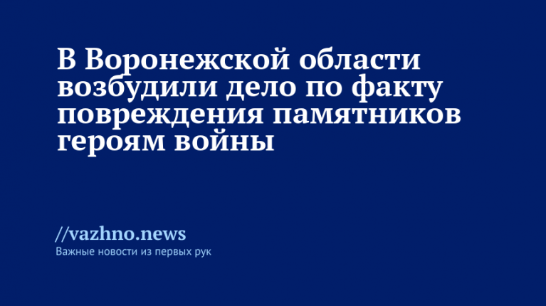 В Воронежской области следственные органы начали уголовное дело после проверки сведений из социальных сетей о порче памятников героям Великой Отечественной войны в городе Эртиле. Об этом 13 августа сообщили в пресс-службе следственного управления (СУ) Следственного комитета РФ по региону.
