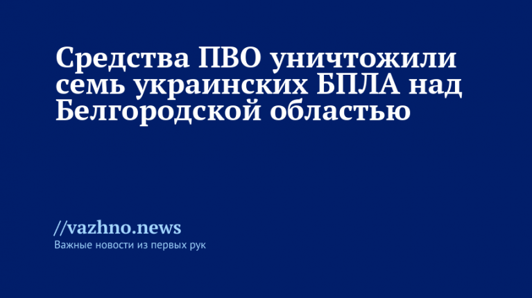 В Telegram-канале ведомства сказано: «Дежурные средства ПВО уничтожили семь украинских беспилотников самолетного типа над территорией Белгородской области».