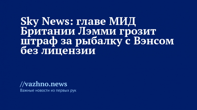 Министру иностранных дел Великобритании Дэвиду Лэмми грозит штраф в размере £2,5 тыс. (примерно 270 тыс. рублей) за рыбалку с вице-президентом США Джей Ди Вэнсом без наличия лицензии на удочку. Об этом 13 августа сообщил телеканал Sky News.