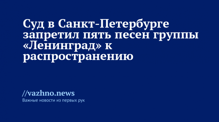 Василеостровский районный суд города Санкт-Петербург запретил распространение пяти композиций группы «Ленинград». Соответствующая информация указана в материалах дела, которые опубликованы на официальном сайте суда.