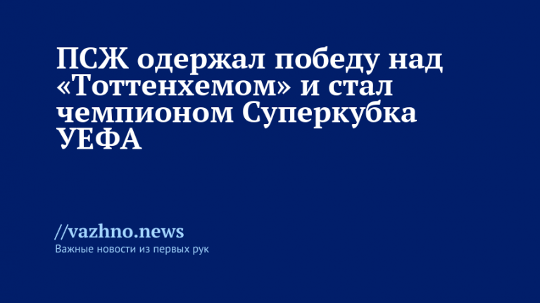 Французский футбольный клуб «Пари Сен-Жермен» (ПСЖ) одержал победу над английским «Тоттенхэмом» и завоевал Суперкубок УЕФА. Матч прошел 13 августа в Удине, Италия.