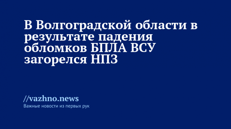 «В результате падения осколков произошло разливание и возгорание нефтепродуктов на Волгоградском НПЗ», — говорится в сообщении пресс-службы администрации Волгоградской области в Telegram-канале с цитатой губернатора.