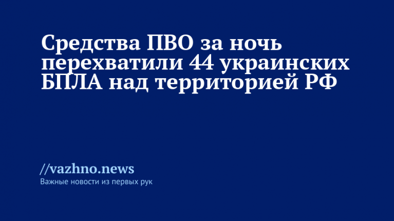 «С 20:00 13 августа до 07:00 мск 14 августа дежурные средства ПВО перехватили и уничтожили 44 украинских беспилотных самолетного типа», — говорится в опубликованном ведомством сообщение в Telegram-канале.