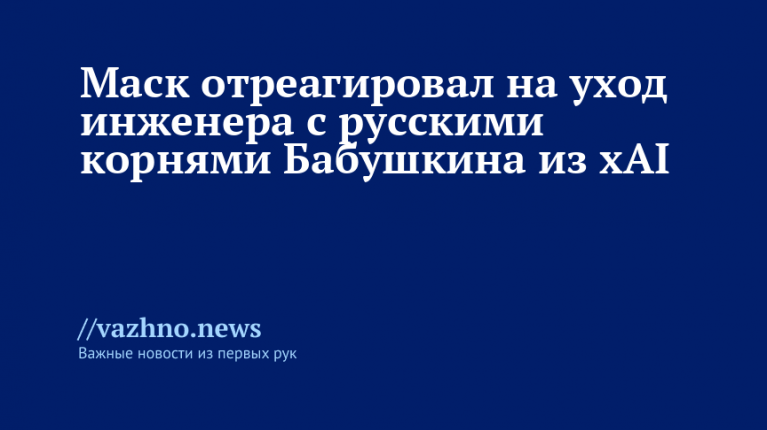 Ранее Бабушкин сообщил, что отработал последний день в фирме Маска. Он подчеркнул, что присоединился к xAI в 2023 году и сыграл важную роль в становлении организации, созданной американским бизнесменом.
