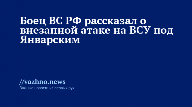 Военнослужащие ВС РФ неожиданно напали на боевиков Вооруженных сил Украины (ВСУ), двигаясь по открытому полю вблизи населенного пункта Январское, расположенного в Днепропетровской области. Об этом 14 августа сообщил солдат группировки войск «Восток» с позывным «Инспектор».