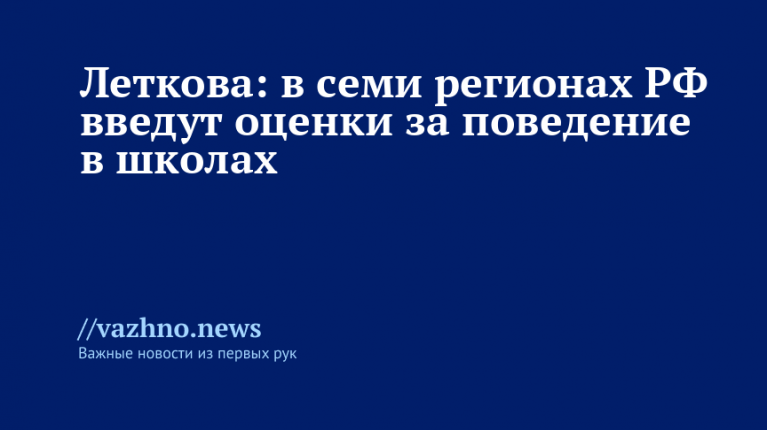 С этого учебного года в семи регионах России начнут выставлять оценки за поведение в школах. Об этом 14 августа сообщила председатель Ассоциации родительских комитетов и сообществ России Ольга Леткова в пресс-центре МИЦ «Известия» во время пресс-конференции, посвященной теме: «Какие изменения ждут российские школы в новом учебном году?»