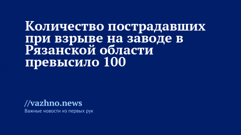 В Шиловском районе Рязанской области во время взрыва на заводе погибли пять человек, свыше 100 получили ранения. Об этом 15 августа сообщил губернатор Павел Малков.