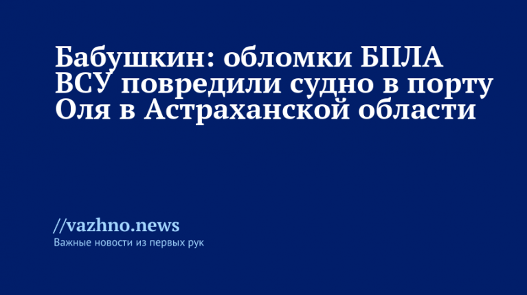 Бабушкин: обломки БПЛА ВСУ повредили судно в порту Оля, Астрахань