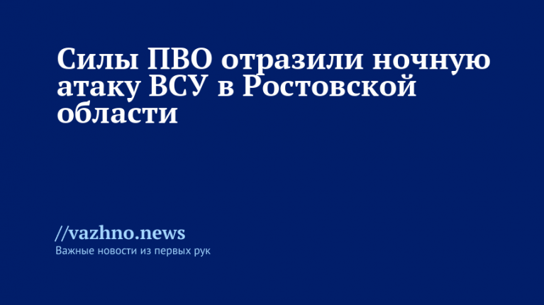 Вооруженные силы (ВС) России, используя средства противовоздушной обороны (ПВО), успешно отразили атаку Вооруженных сил Украины (ВСУ) на территорию Ростовской области. Об этом сообщил 16 августа временно исполняющий обязанности губернатора этого региона Юрий Слюсарь.