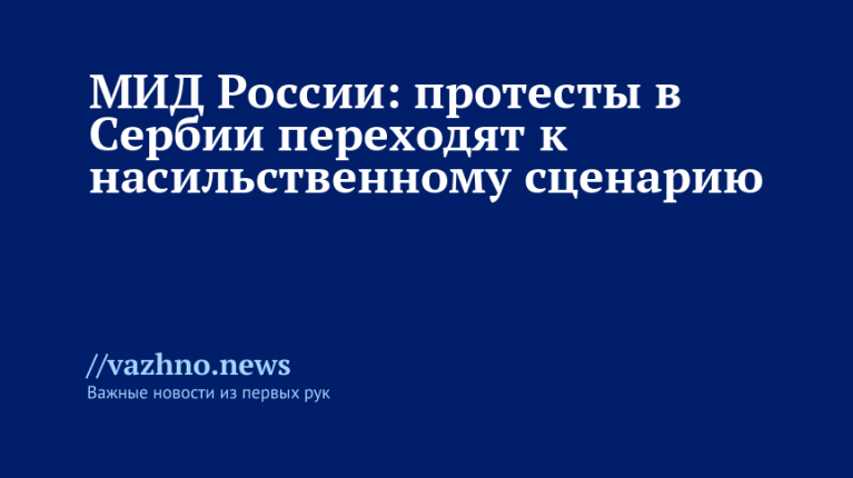 Помимо этого, в МИД добавили, что Россия не останется безразличной к событиям в Сербии. Представители ведомства выразили уверенность, что Белград сумеет справиться с протестами и восстановить спокойствие.