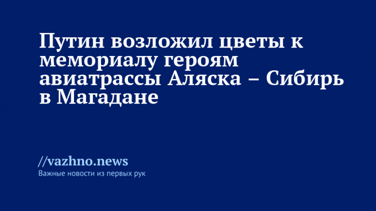15 августа президент России Владимир Путин возложил цветы у мемориала, посвящённого героям авиаперевозок по трассе Аляска – Сибирь в Магадане, который олицетворяет сотрудничество СССР и США во время Второй мировой войны.
