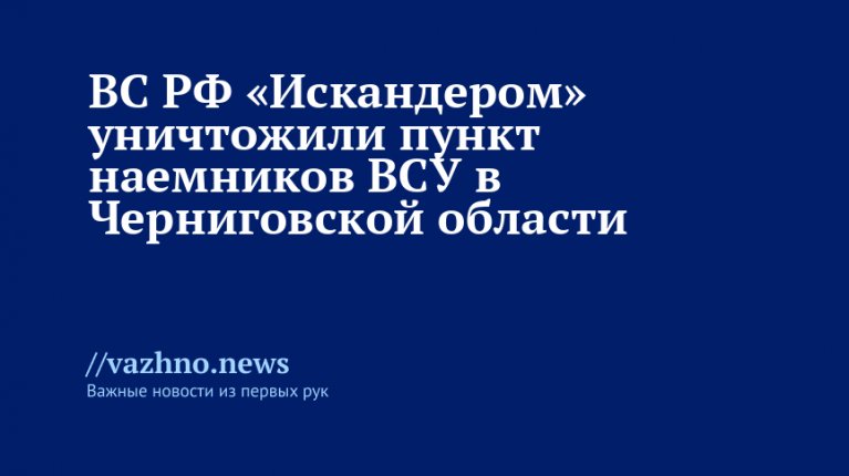 Представитель агентства заявил: «В Черниговской области ударом ОТРК «Искандер-М» уничтожен крупный пункт дислокации иностранных наемников ВСУ».