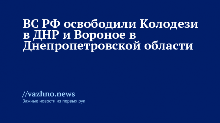 Российские Вооруженные Силы (ВС) провели операцию по освобождению населенных пунктов Колодези в Донецкой Народной Республике (ДНР) и Вороное в Днепропетровской области. Сообщение об этом Минобороны России опубликовало 16 августа.