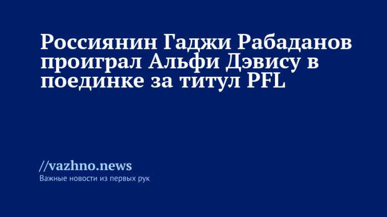 16 августа российский боец Гаджи Рабаданов уступил в финальном поединке Мирового тура Профессиональной бойцовской лиги (PFL) британскому спортсмену Альфи Дэвису.