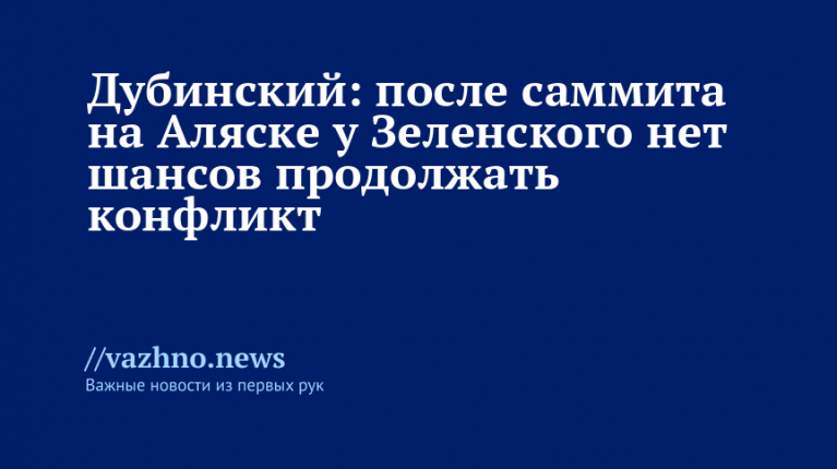 Дубинский: после саммита на Аляске у Зеленского нет шансов на конфликт