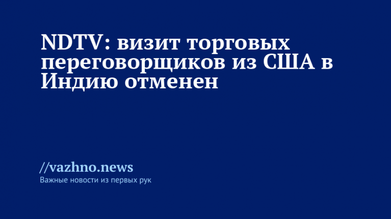 «Из-за возросшей напряженности в экономических отношениях, связанной с повышением тарифов, намеченный на 25-29 августа визит американской делегации в Индию для проведения торговых переговоров был отменен», — говорится в сообщении.