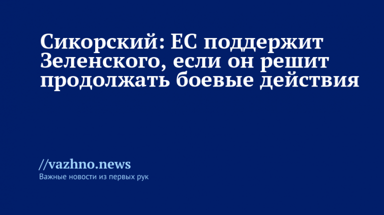 Европейские партнеры Киева намерены продолжать оказывать поддержку президенту Украины Владимиру Зеленскому, если он примет решение продолжать военные действия. Об этом 16 августа заявил глава МИД Польши Радослав Сикорский.