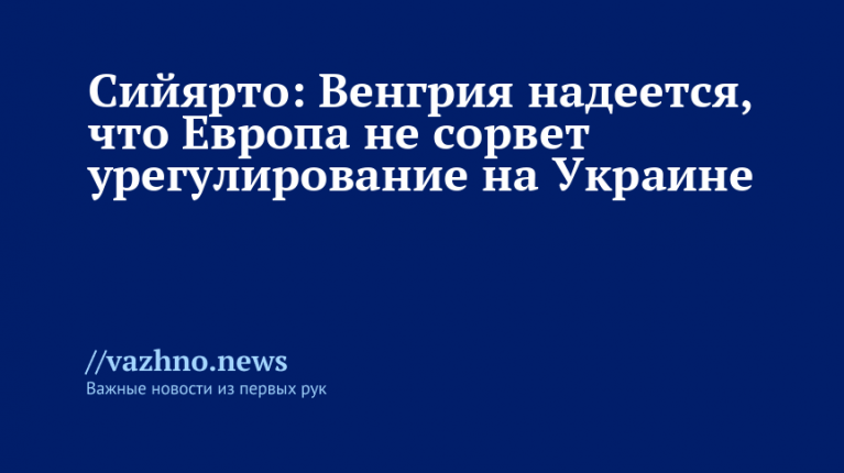 Сийярто: Венгрия рассчитывает, что Европа не сорвет урегулирование в Украине